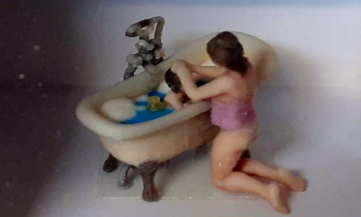 Proposée sous la référence Noch 10421 cette figurine représente un Femme baignant un enfant