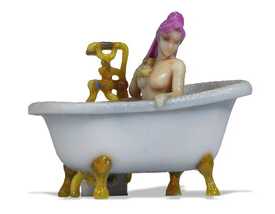 Proposée sous la référence Noch 10420, cette figurine représente un femme entrain de prendre son bain dans sa baignoire.