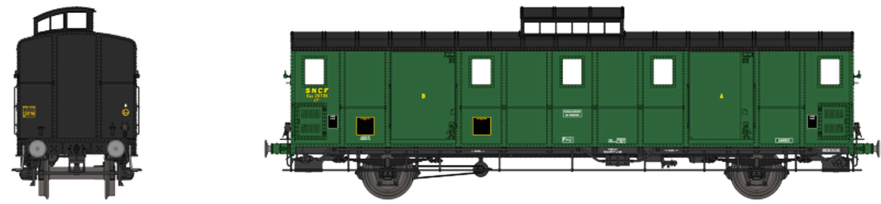 V-001-D-01 Fourgon Toit riveté Noir, vigie, boites d’essieux à coussinets, N°25735 « LIMOGES » Ex- PO Grille