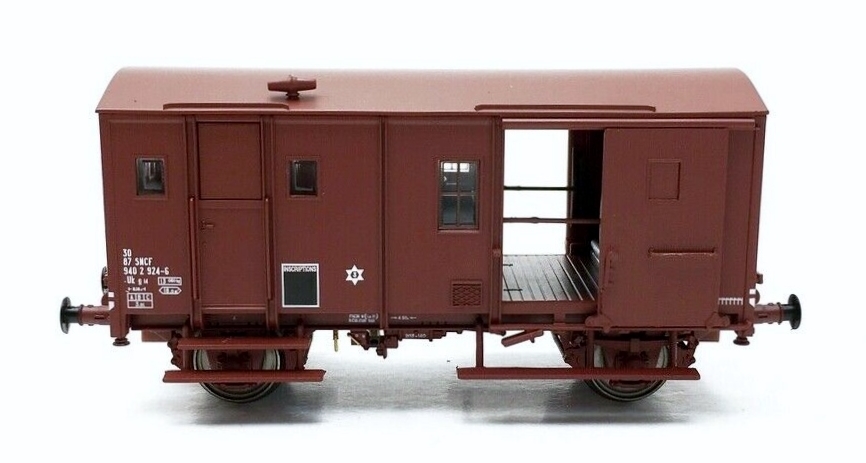 Représentation fidèle d'un fourgon type UK de la SNCF, rouge UIC, toit & chassis rouge UIC, numérotation UIC, sans feu fin de convoi
