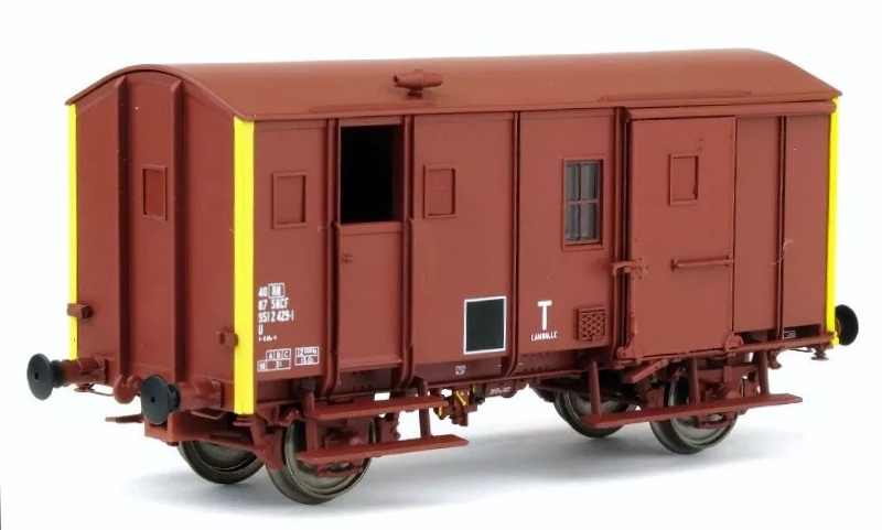 Représentation fidèle d'un fourgon type UK de la SNCF, rouge UIC, toit & chassis rouge UIC, sans feu fin de convoi, cul jaune