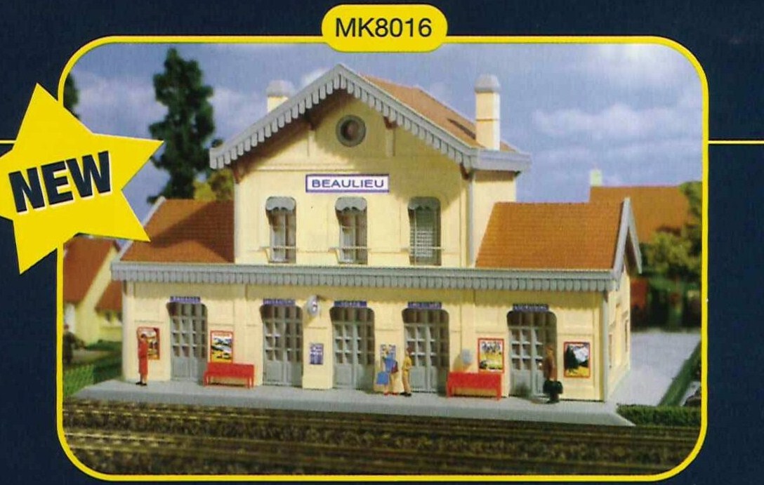 Maquette en plastique à l'échelle HO de la marque MKD, représentant une gare typiquement française.