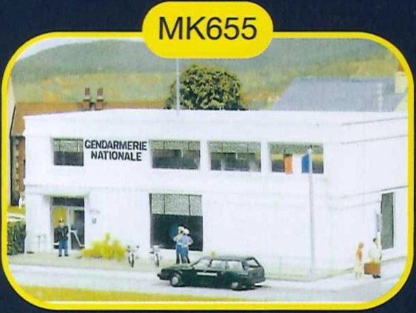 Maquette plastique à l'échelle HO (1/87ème) de la marque MKD représentant un batiment de gendarmerie française.