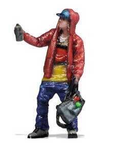 Proposée sous la référence Noch 10601, cette figurine représente un graffeur ou un tagueur avec sa bombe de peinture.