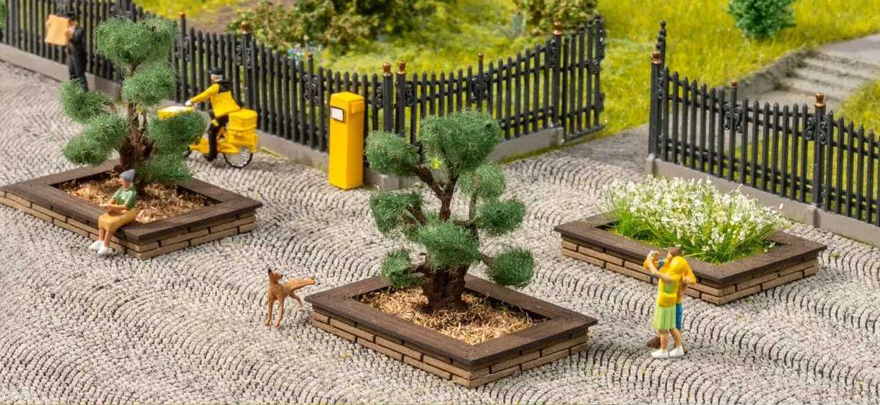 Spécialement conçu pour l'échelle N, cet îlot est le choix idéal pour donner une touche authentique et vivante à vos villes et places de villages avec des plantes et des arbres. La diversité des plantations s'intègre harmonieusement dans n'importe quel environnement et lui confère une atmosphère vivante et naturelle.