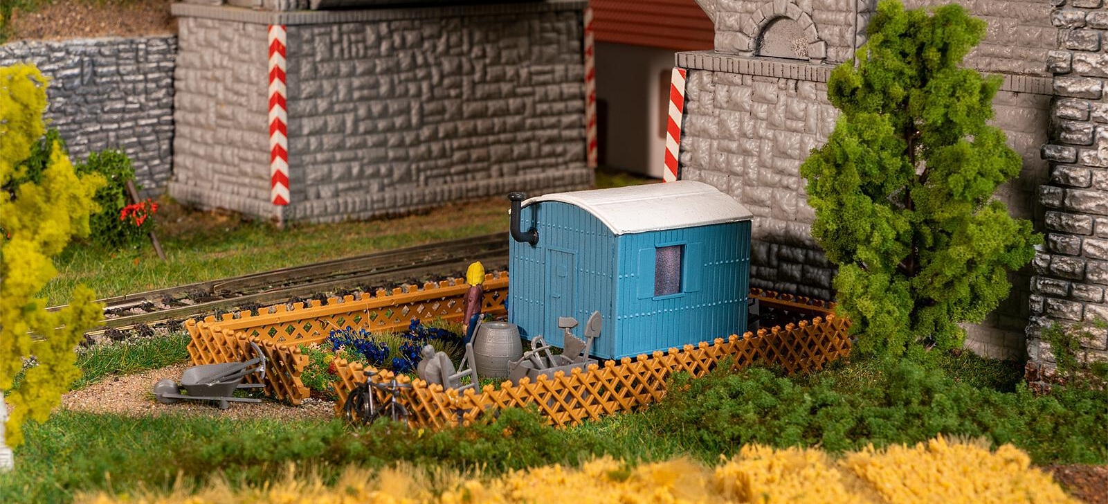 Retrouvez chez Easy-Miniatures, sous la référence Faller 190090, ce joli jardin ouvrier livré avec figurines.
