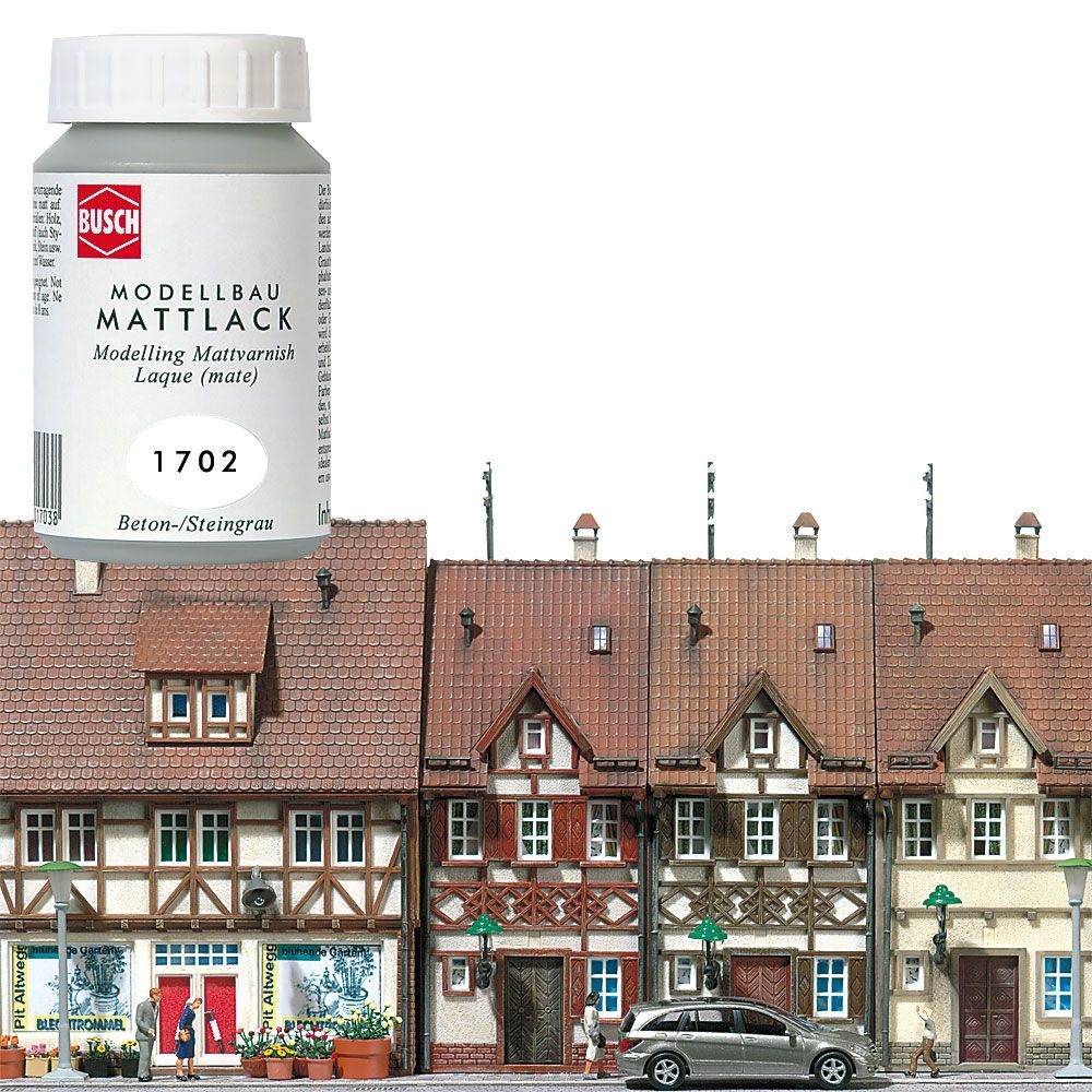 Les peintures mates Busch sont des couleurs acryliques spécialement conçus pour les besoins des modélistes ferroviaires. Avec les 8 couleurs diponibles, tous les aspects du modélisme ferroviaire et de l'aménagement paysager sont abordés : gris couleur béton, brun couleur terre, vert couleur herbe, bleu de l'eau, rouge couleur brique etc... Les 8 peintures peuvent être mélangées entre elles, de sorte que toutes les couleurs intermédiaires peuvent être reproduites.