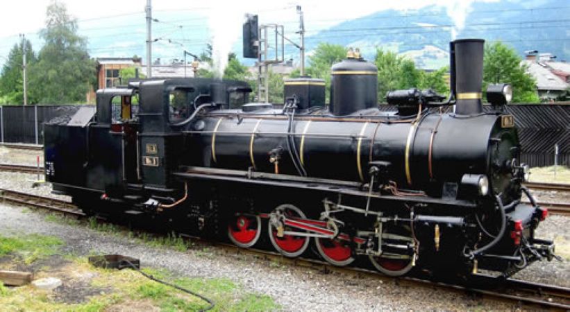 Modèle réduit de la locomotive à vapeur à voie étroite MH.3 de la compagnie Salzburger Lokalbahn (SLB) employée pour le service de trains nostalgiques sur la ligne Pinzgauer Lokalbahn. Cette locomotive est actuellement en fonctionnement sur la ligne touristique (musée du rail)