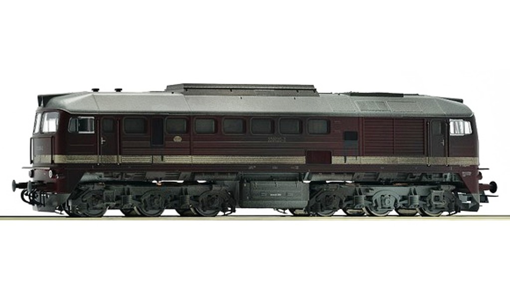 Modèle réduit Roco représentant une locomotive diesel 220 020 de la Société des chemins de fer allemands, version légèrement vieillie avec peinture blanchie.