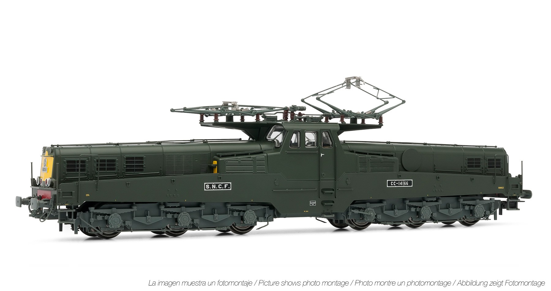 Easy-Miniatures présente la nouvelle locomotive électrique CC 14014 livrée verte faces frontales jaunes présentant les caractéristiques suivantes :