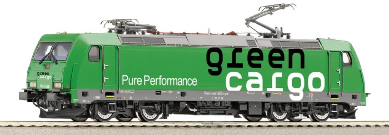 Modèle réduit Roco d'une locomotive électrique série 185.5 de la division marchandises GREEN CARGO des Chemins de fer Suédois (SJ)