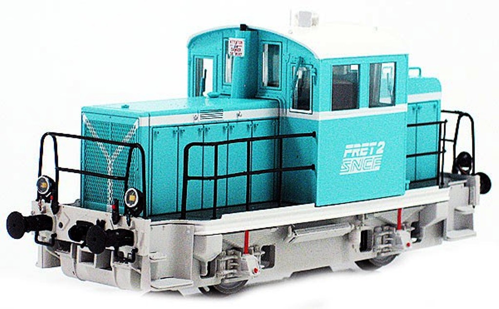 Modèle réduit d'EPM représentant un locotracteur diesel Y-6400 FRET 2 livrée vert turquoise avec traverse et châssis gris