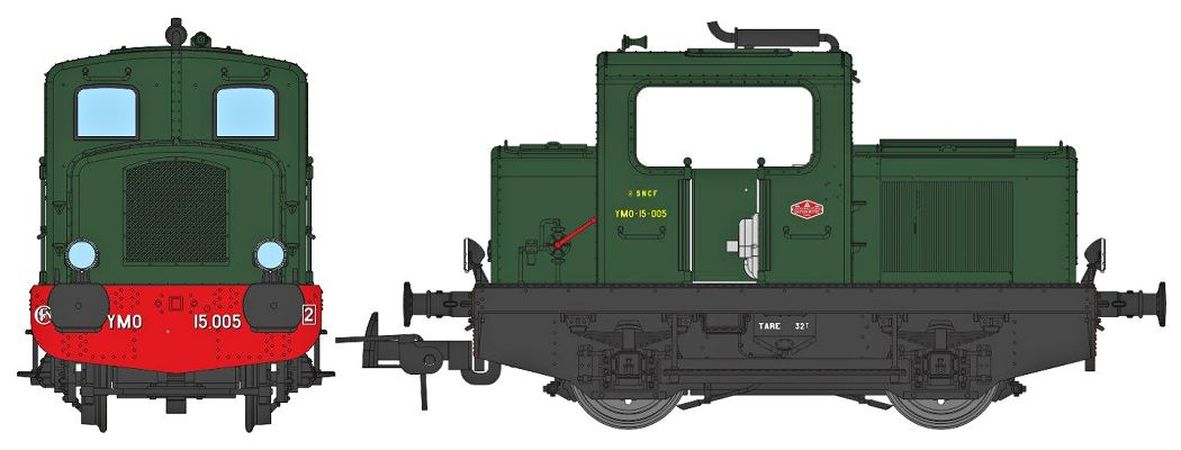 MOYSE, SNCF Vert 306, Traverse rouge rideau sur capot moteur, phares Marshall