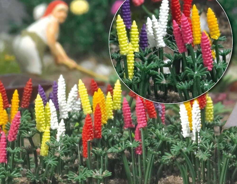 Ce kit Busch 1218 vous permet de confectionner 16 buissons de lupins avec pour chacun d'eux au moins 3 fleurs et 9 feuilles. Les fleurs sont fournies en différentes couleurs vives (jaune, rouge, violet, orange, blanc...), typiques des lupins que l'on trouve dans les jardins.