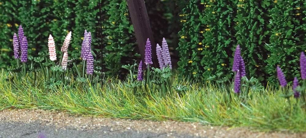 Ce kit Busch 1217 vous permet de confectionner 16 buissons de lupins avec pour chacun d'eux au moins 3 fleurs et 9 feuilles. Les couleurs des fleurs correspondent à la végétation typique de la lisière de la forêt et des champs dans diverses nuances de violet.
