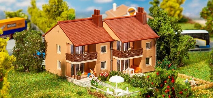 Maquette Faller, référence 232546, représentant 2 maisons de ville mitoyennes.