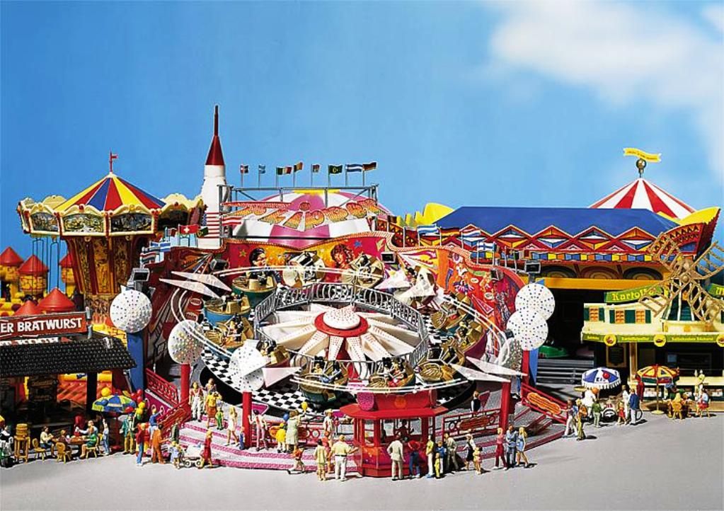 Dans un rythme à couper le souffle, les 12 biplaces, cabines colorées tournent dans un cercle.