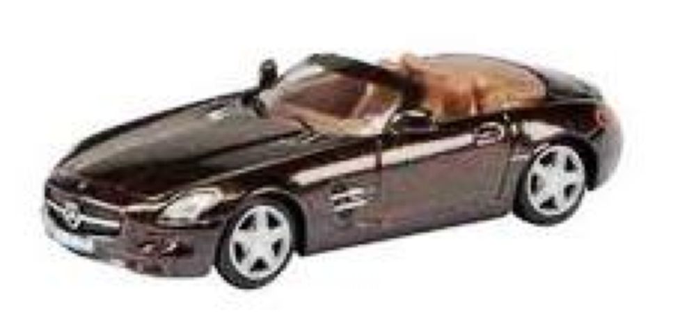 Modèle réduit Schuco représentant un véhicule de sport, une Mercedes-Benz SLS AMG Coupé de couleur marron