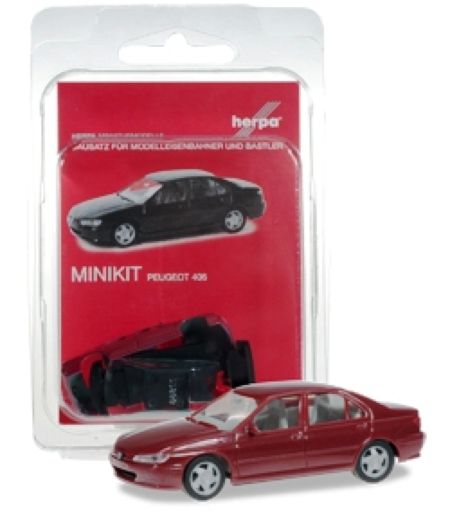 Modèle réduit Herpa représentant une voiture Peugeot 406, de couleur vin