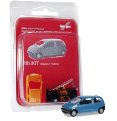 Modèle réduit Herpa représentant une voiture Renault Twingo, de couleur bleue brillant