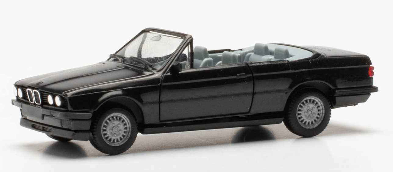 Miniature la marque Herpa représentant une voiture BMW 3er E30 cabriolet de couleur noire