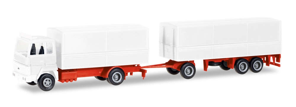 Vous êtes ici : Accueil > Décor > Véhicules > MiniKit Camion baché avec remorque Ford Transconti, blanc