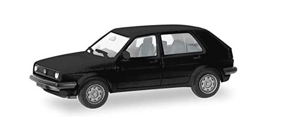 Véhicule miniature de la marque Herpa représentant une VW Golf II à 4 portes, noire.