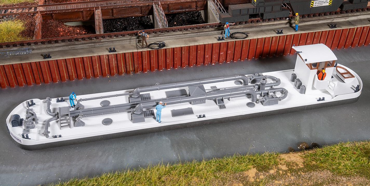 Retrouvez sur Easy-Miniatures, sous la référence Faller 131017, cette superbe maquette en plastique de la marque Faller représentant un bateau-citerne. Cette maquette de bateau-citerne apportera une ambiance portuaire et industrielle authentique à votre diorama. La coque aplatie, la timonerie et le système de tuyauterie sur le pont apportent une touche industrielle supplémentaire.