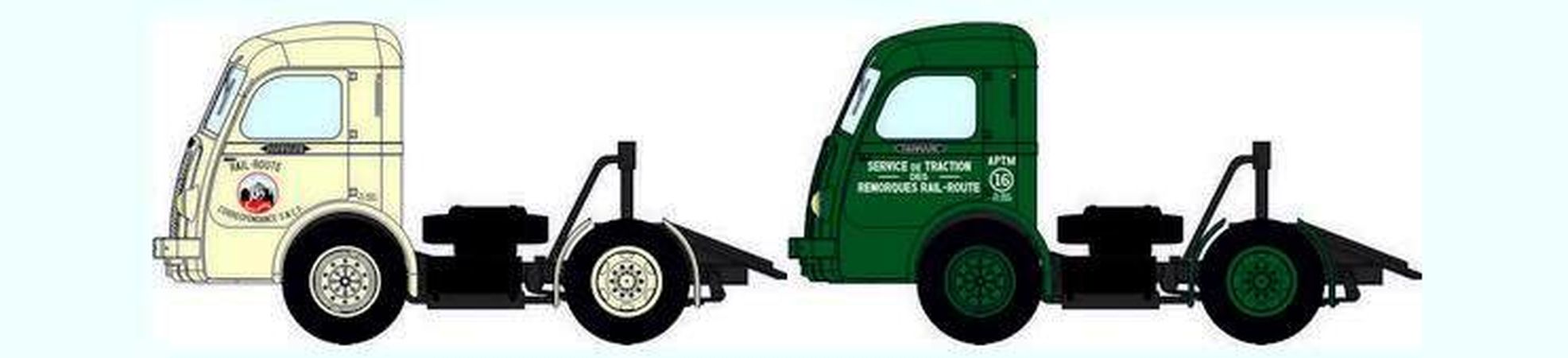 Véhicules REE se composant de deux tracteurs, un Panhard Movic "APTM" Vert et un Panhard Movic "RAIL-ROUTE" Série 4