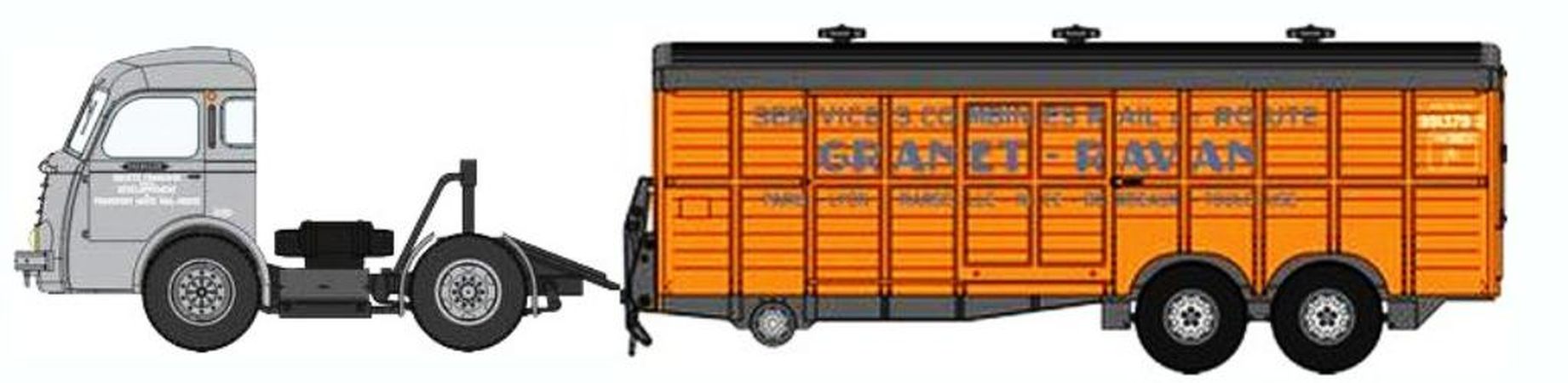 Véhicule REE représentant un tracteur Panhard Movic "SOFRAMIXTE" Gris et sa remorque UFR "GRANET RAVAN" Série 1
