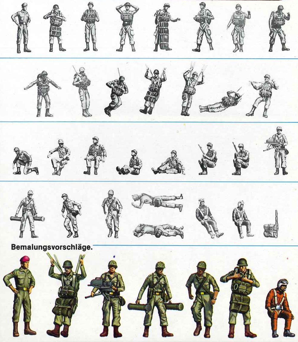 Figurines PREISER représentant des parachutistes à l'échelle HO (1/87e)