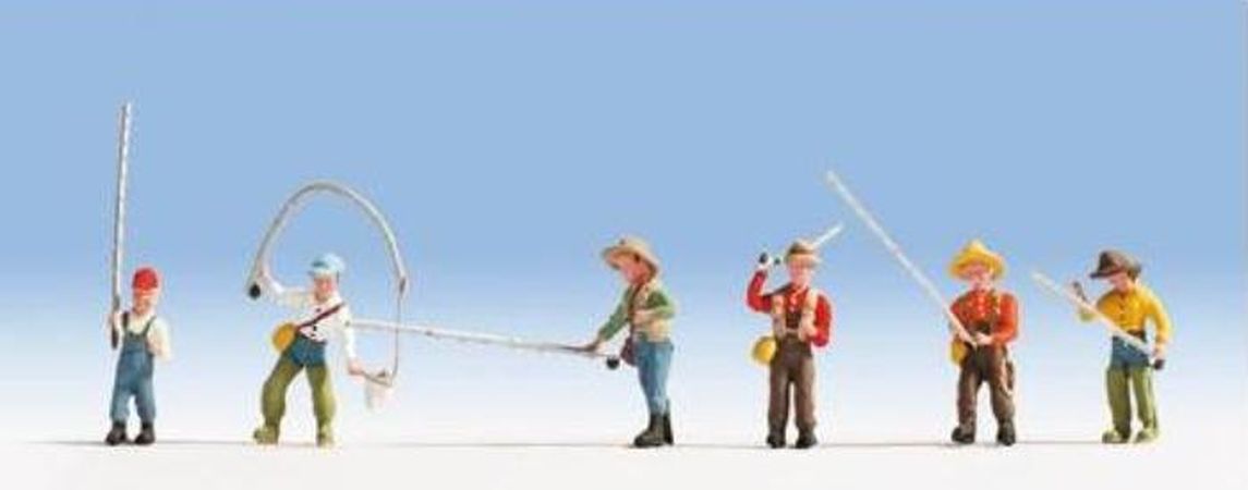 Boite de 6 figurines représentant des pêcheurs.