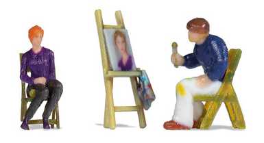 Proposée sous la référence Noch 10415, cette figurine représente un peintre avec son chevalet et son modèle.