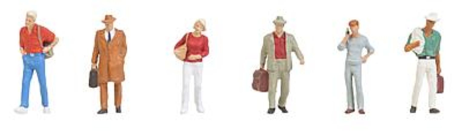 Figurines Faller représentant 6 personnes en attente de prendre un train voir un bus.