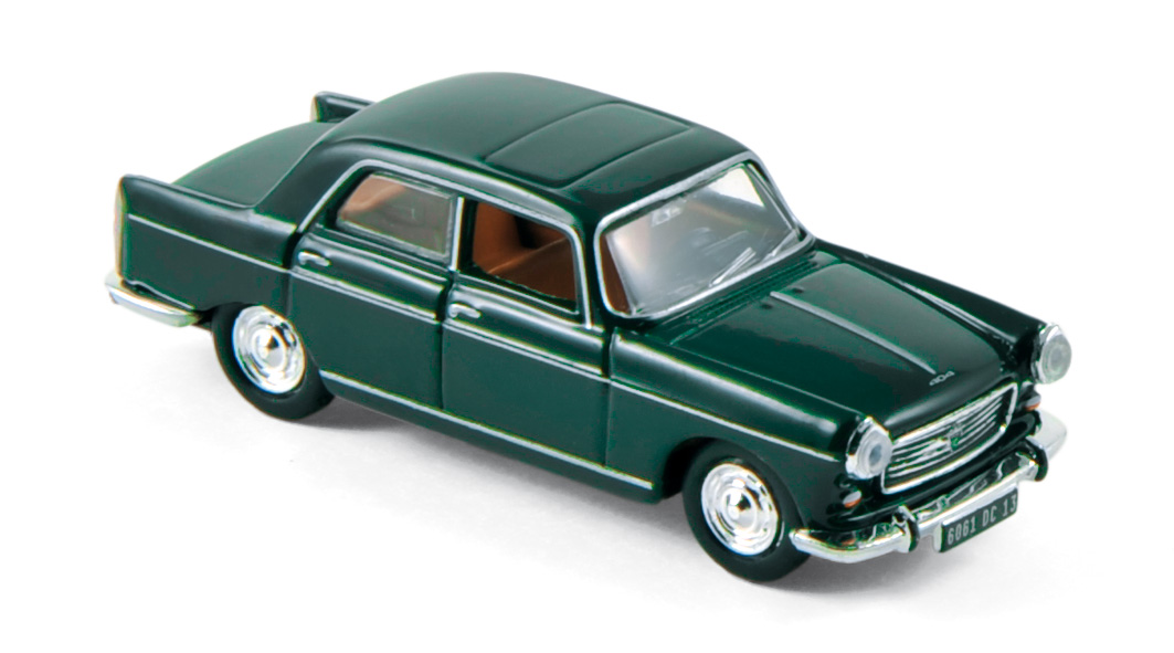Véhicule finement détaillé Norev représentant un véhicule Peugeot 404, année 1968, couleur verte
