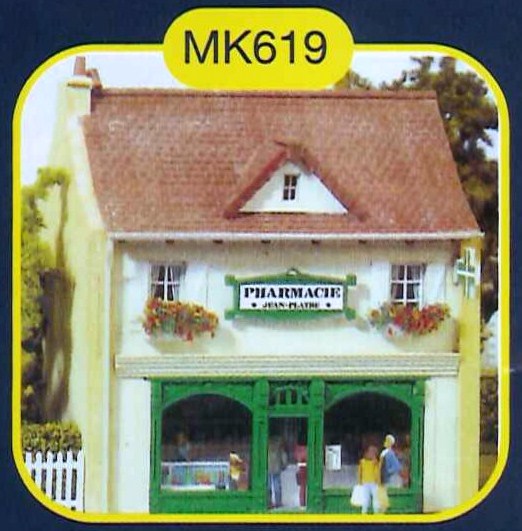 Maquette à l'échelle HO de la marque MKD, représentant la pharmacie française "Jean Platre"