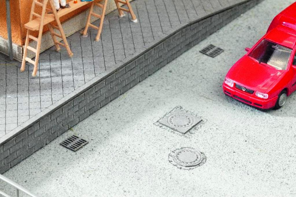 Maquette Noch représentant 25 plaques d'égouts en laser cut