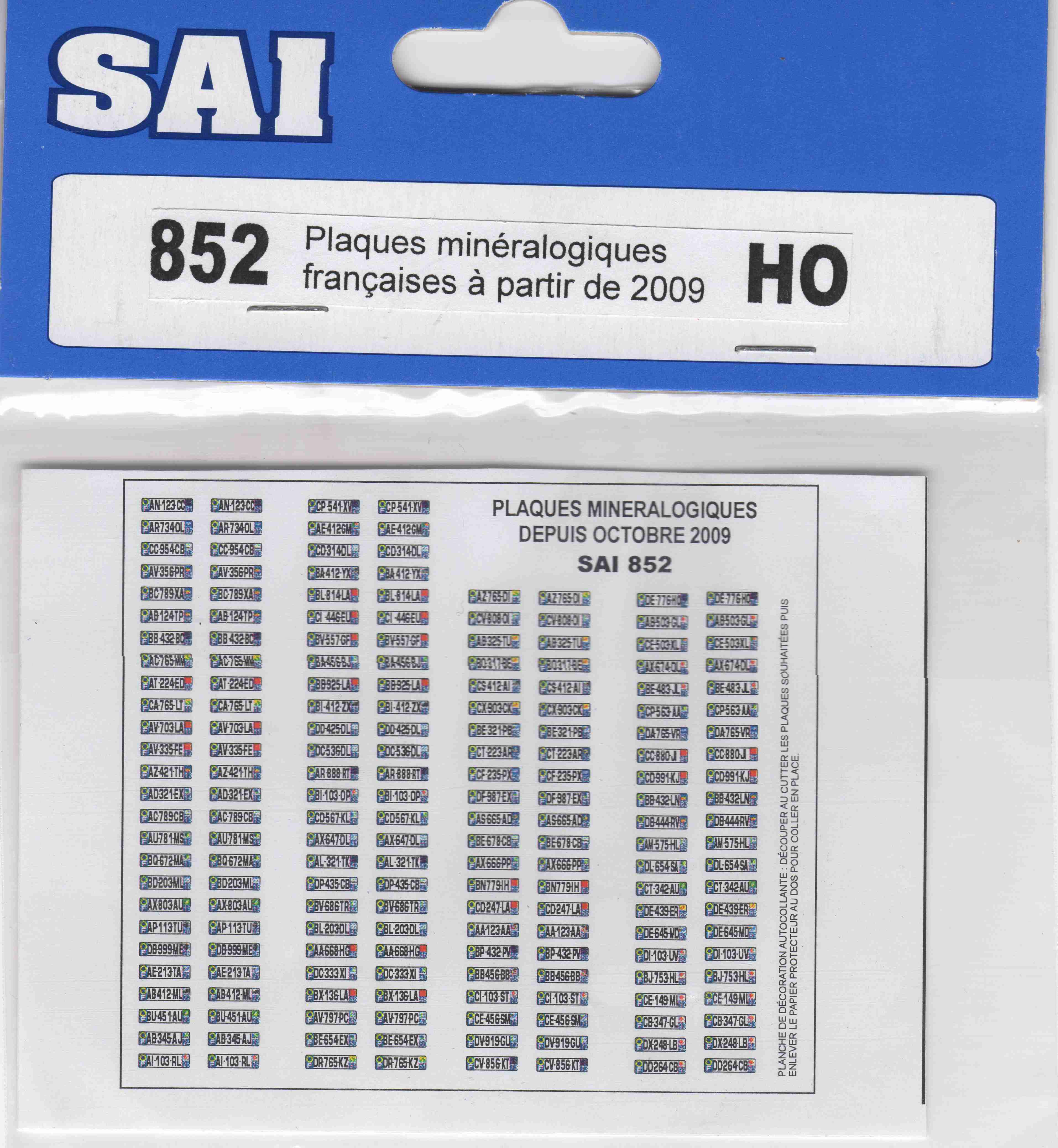 SAI 0852 - Plaques minéralogiques à partir de 2009