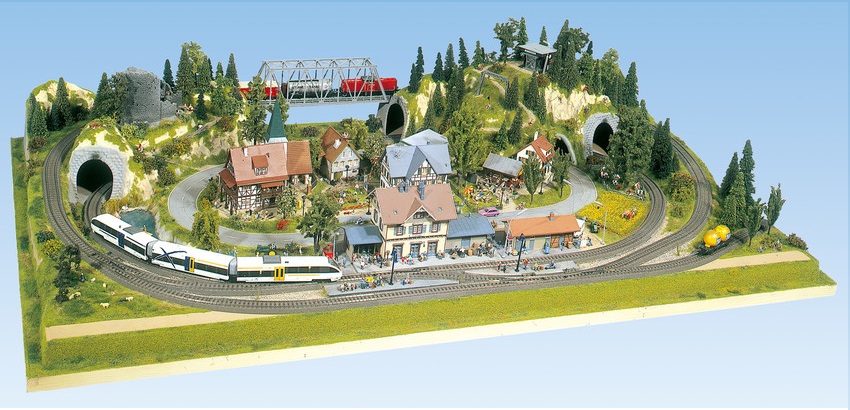 Ce plateau comprend la structrue du décor (relief, emplacement des routes et des rails + pont). Les rails, le matériel roulant ainsi que les éléments du décor (maquettes, arbres, figurines, etc...) ne sont pas inclus et sont à commander séparément (pour obtenir la liste des références de rails et de décor à commander, nous consulter)