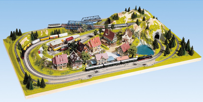Ce plateau comprend la structrue du décor (relief, emplacement des routes et des rails, ponts). Les rails, le matériel roulant ainsi que les éléments du décor (maquettes, arbres, figurines, etc...) ne sont pas inclus et sont à commander séparément (pour obtenir la liste des références de rails et de décor à commander, nous consulter)