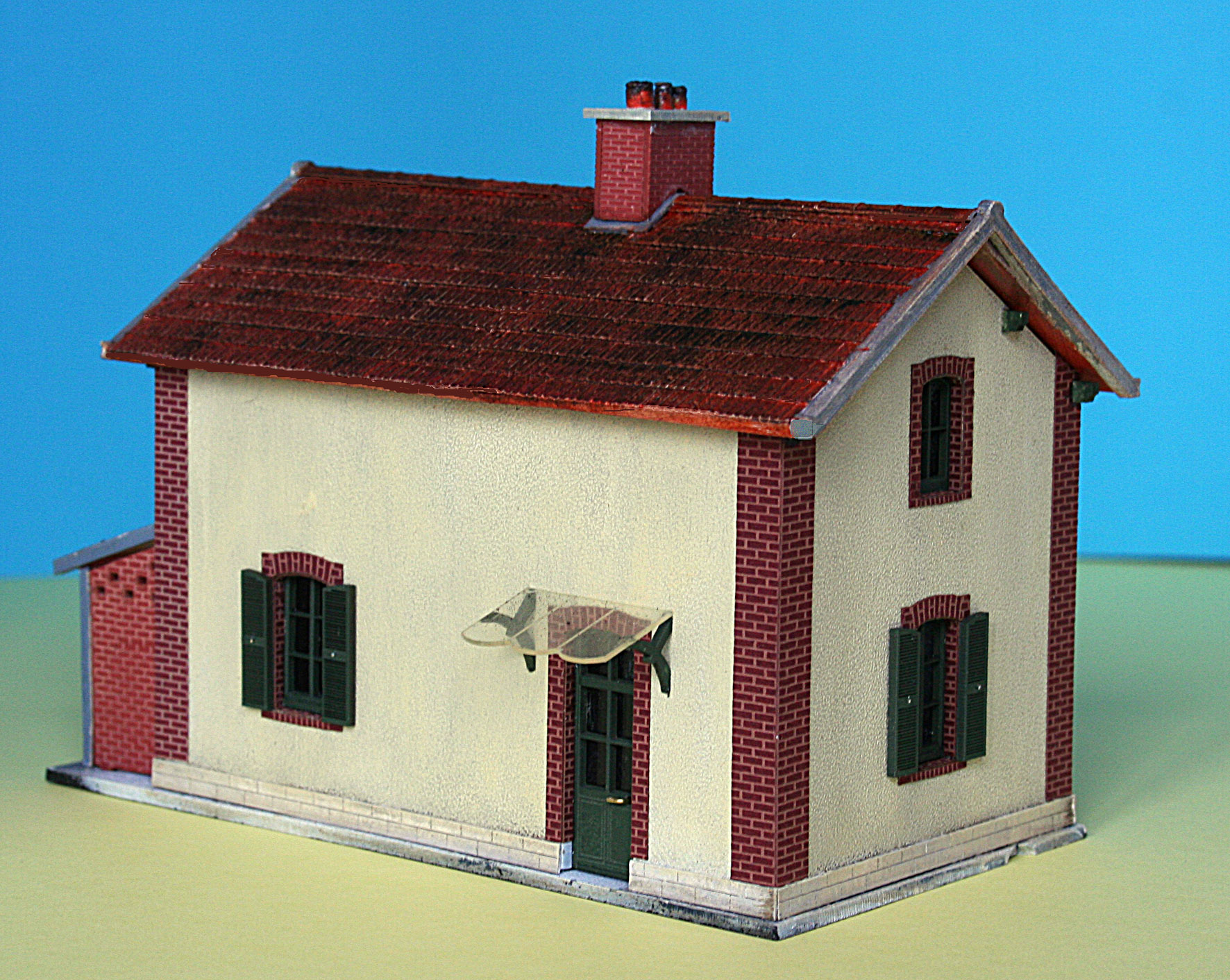 Maquette Atelier Belle Epoque finement détaillé représentant une maison de garde barrière avec aménagement et éclairage