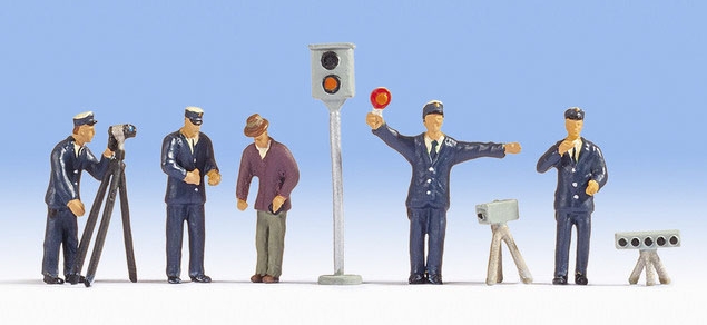 Figurines Noch représentant 5 agents de police avec leurs équipements de radar