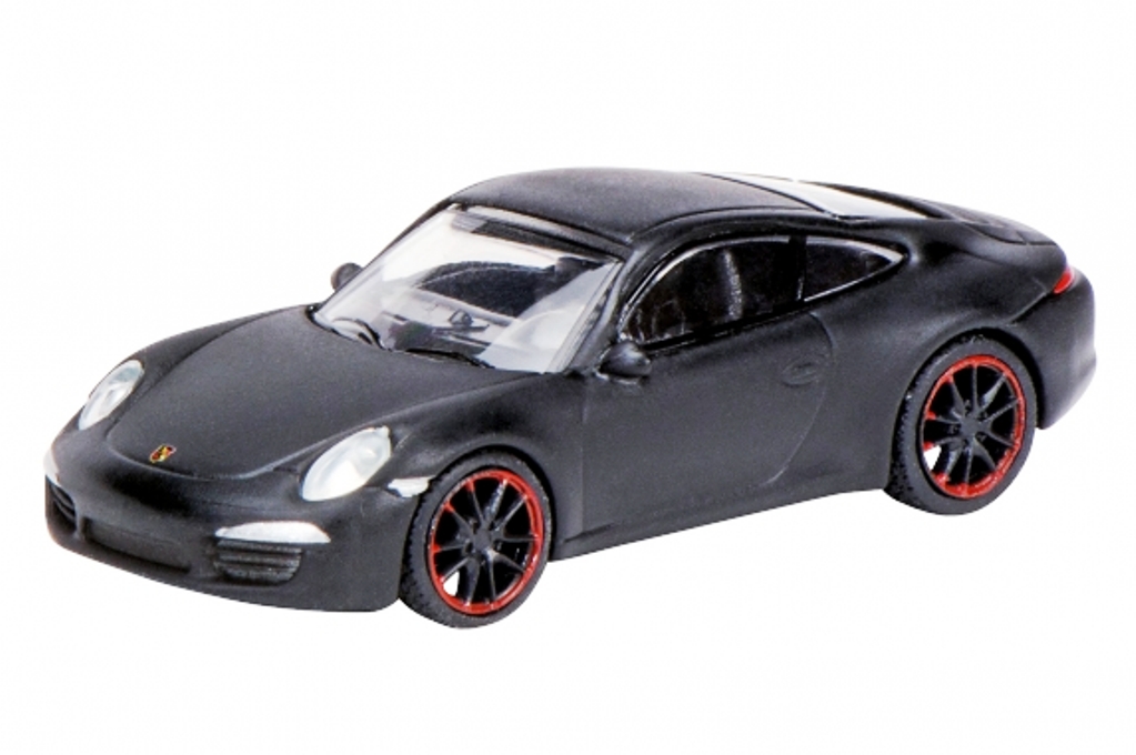 Modèle réduit Schuco finement détaillé représentant un véhicule Porsche 911 Carrera S de couleur noir.