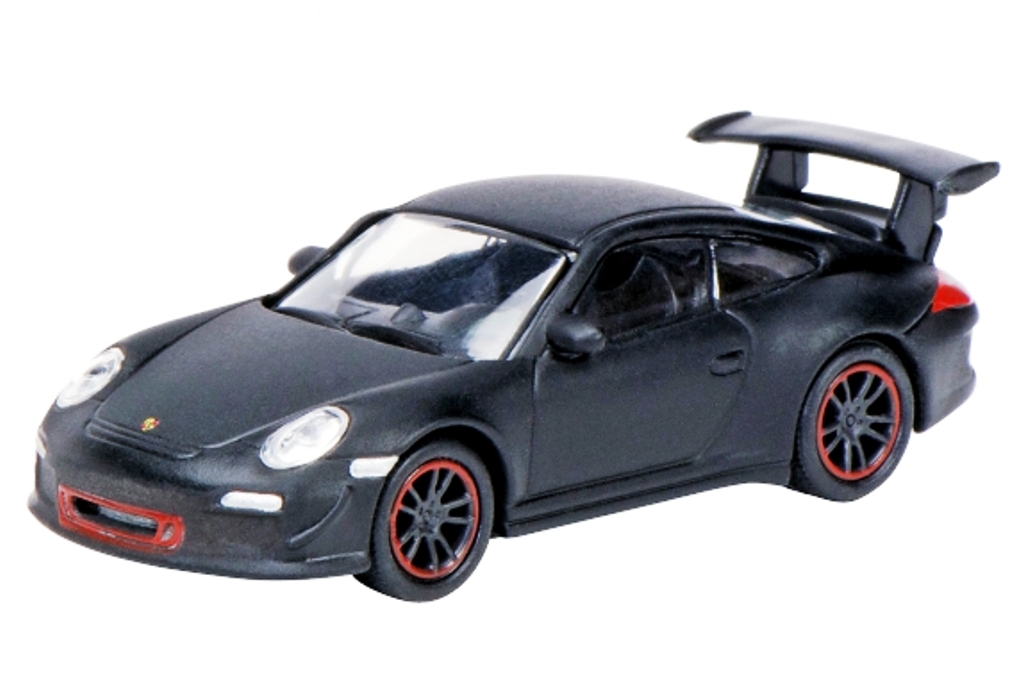 Modèle réduit Schuco finement détaillé représentant un véhicule Porsche 911 GT3 RS de couleur noir.