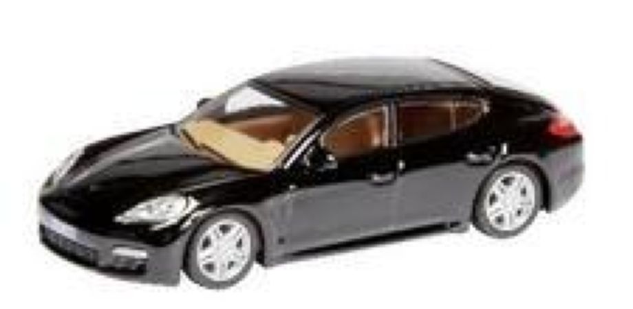 Modèle réduit Schuco représentant un véhicule de sport, la Porsche Panamera Noire