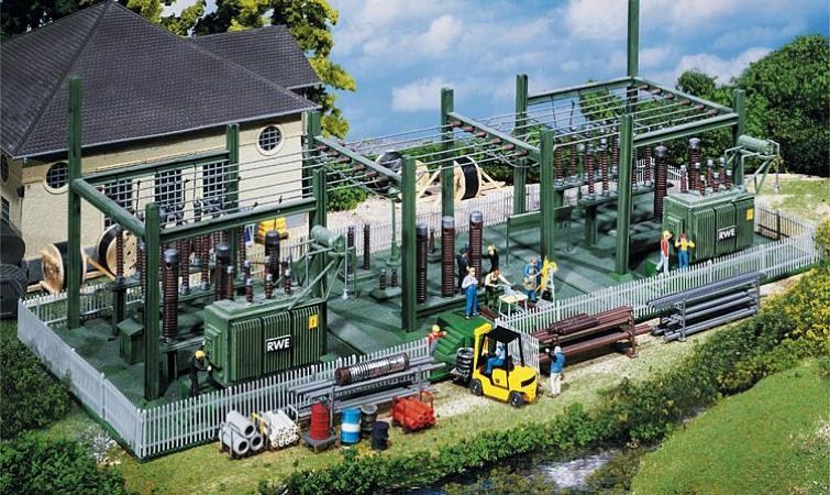 Maquette Faller représentant un poste de transformation électrique.