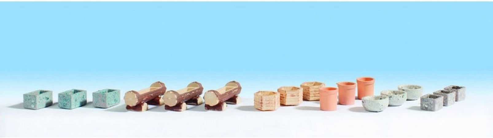 Les pots Model Railway, ensemble d'accessoires de fleur est très polyvalent. Les pots peuvent être utilisés sur une terrasse ou un jardin. Les pots de fleurs peuvent embellir un café dans une zone piétonne ou un restaurant avec jardin.