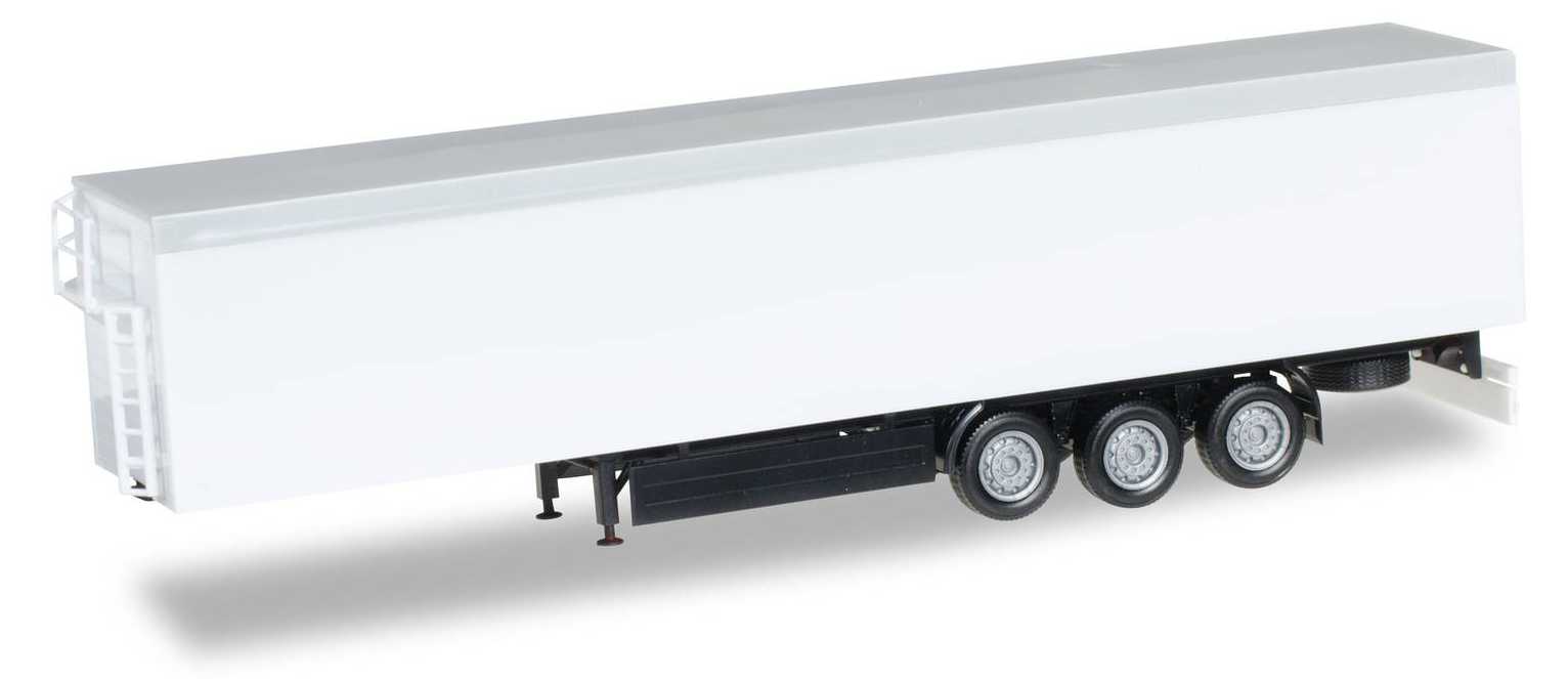 Modèle réduit Herpa représentant une remorque 3 essieux de couleur blanche et bas de caisse noir.