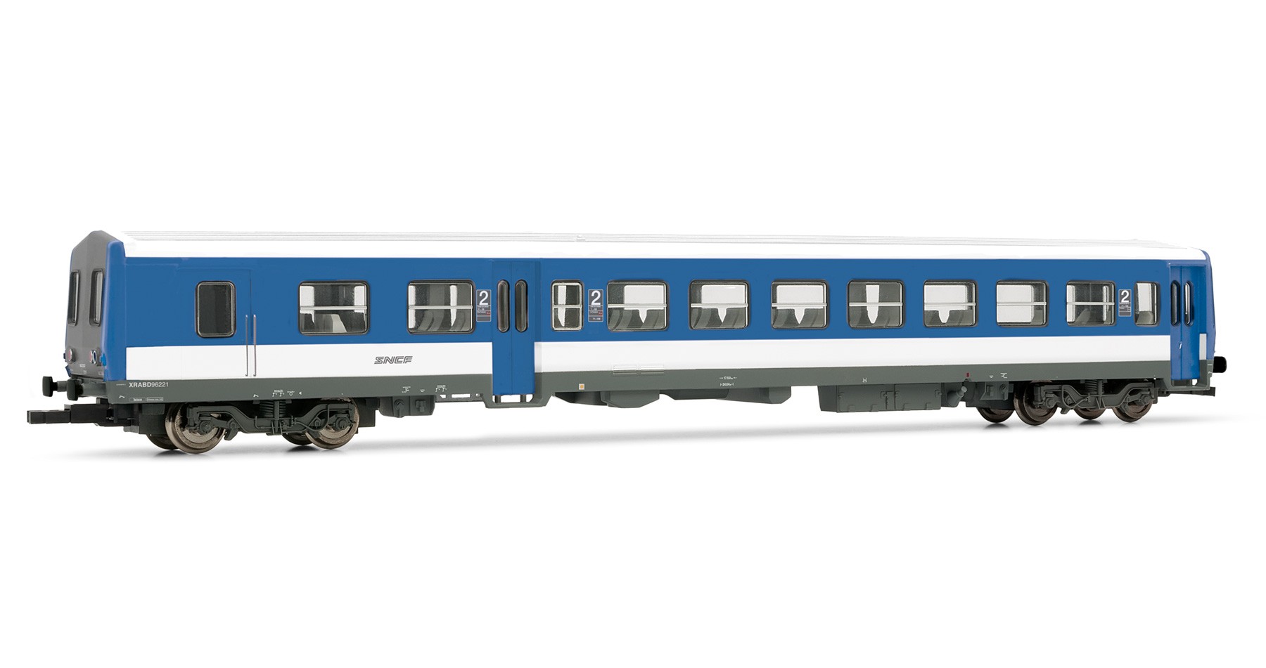 remorque d'autorail XR 6000, livrée bleu clair/blanc, sigle "Desgrippes"