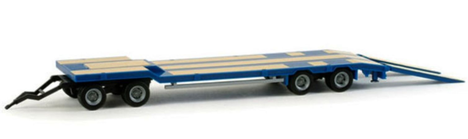 Modèle réduit Herpa représentant une Remorque de chantier de construction Goldhofer TU 4 de couleur bleu et bandes jaune